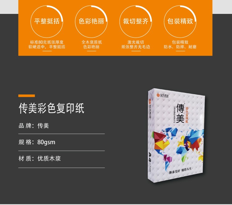 傳美 80g 彩色復(fù)印紙 A4 橙色 500張/包