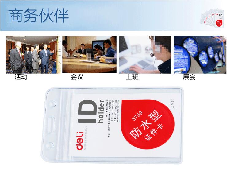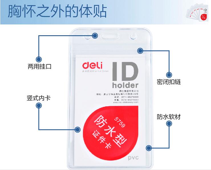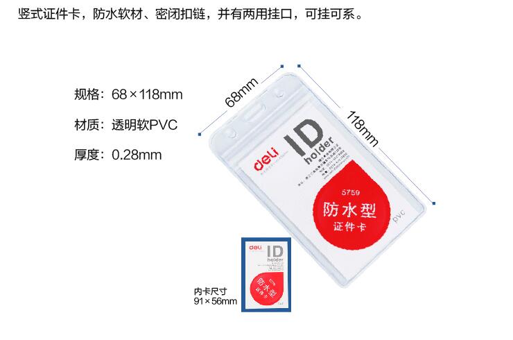 得力 5759 豎式防水型證件卡套 68*118MM 透明色 10個(gè)/包