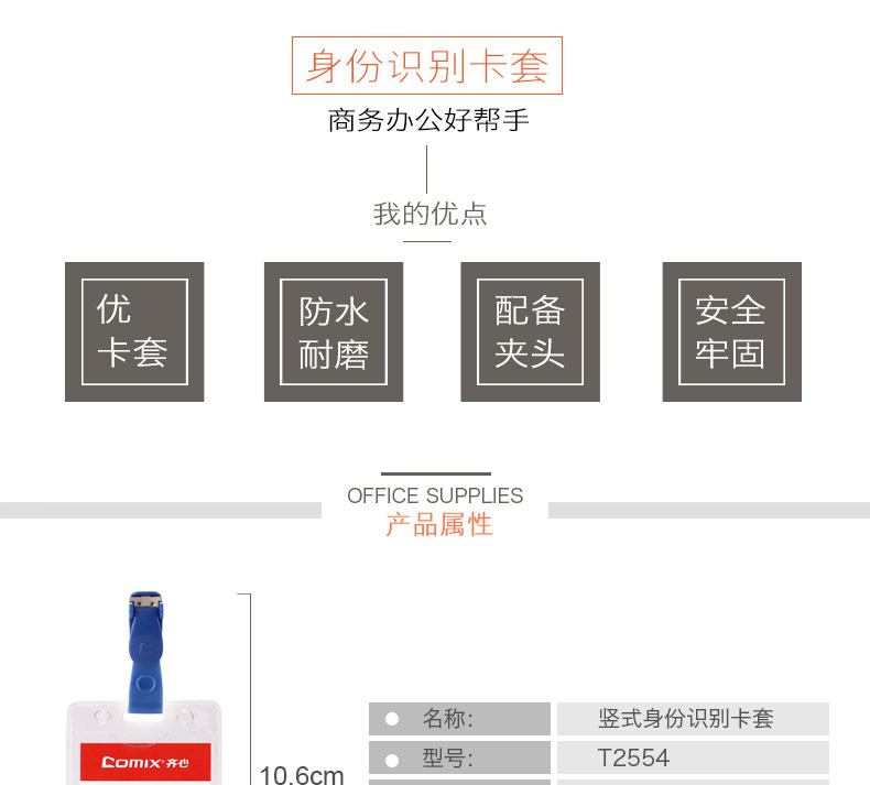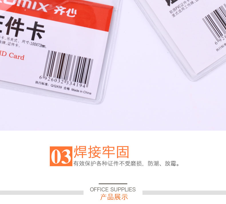 齊心 T2555 橫式透明工作卡套 100*72mm 透明色 50個/包