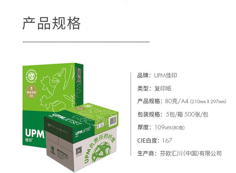 UPM佳印 80g 復(fù)印紙 A4 白色 500張/包