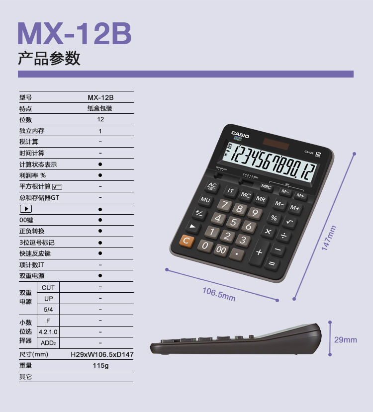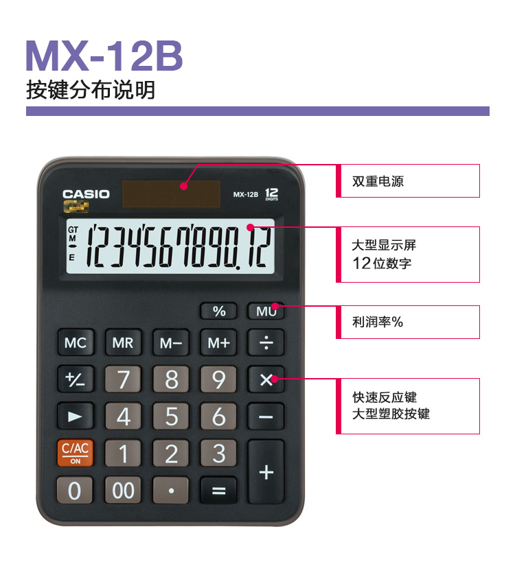 卡西歐 MX-12B 常規(guī)計算器 黑色