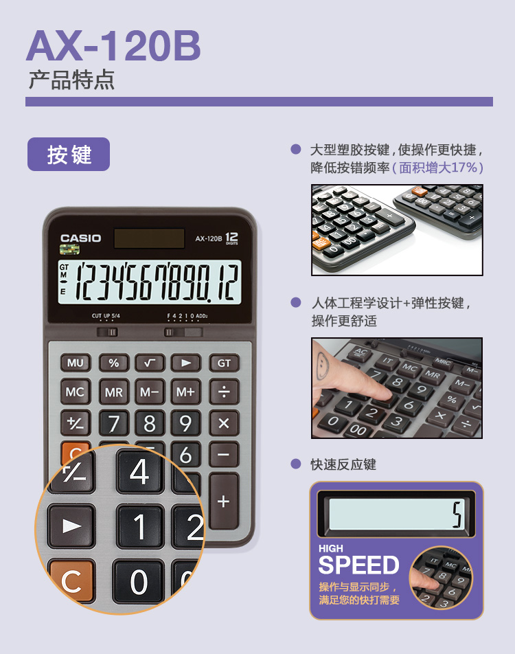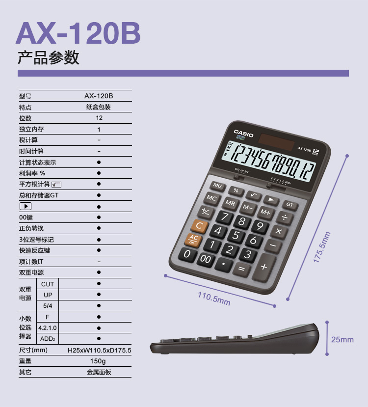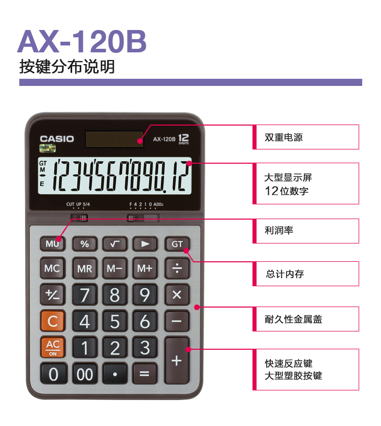 卡西歐 AX-120B 常規(guī)計(jì)算器 灰色