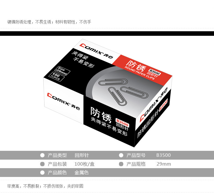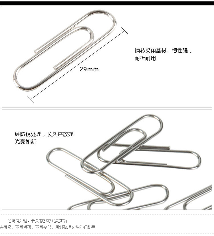 齊心 B3500 防銹回形針 29MM(100枚/盒)鎳色