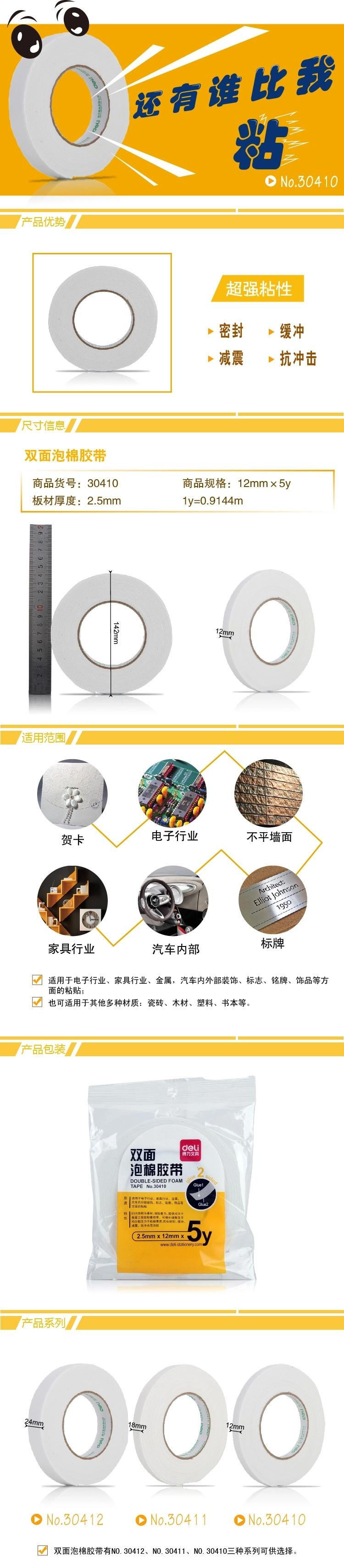 得力 30410EVA 泡棉雙面膠帶 12mm*5y*2.5mm 白色