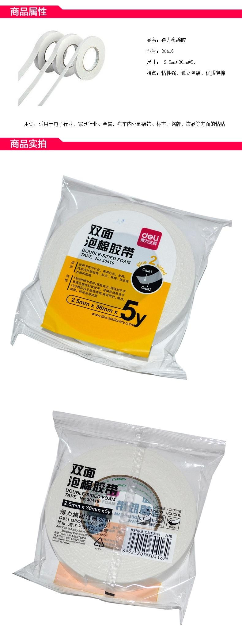 得力 30416EVA 泡棉雙面膠帶 36mm*5y*2.5mm 白色