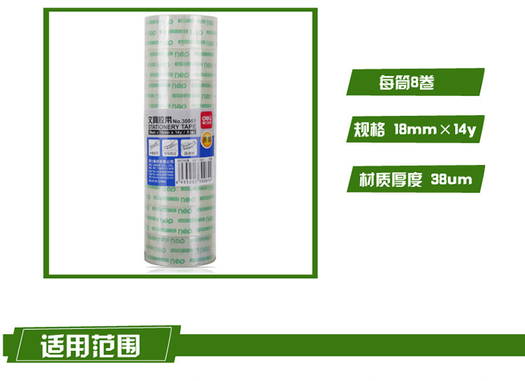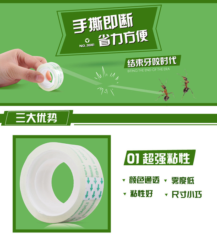 得力 30061 易撕型文具膠帶 18mm*14y 透明 按卷銷售