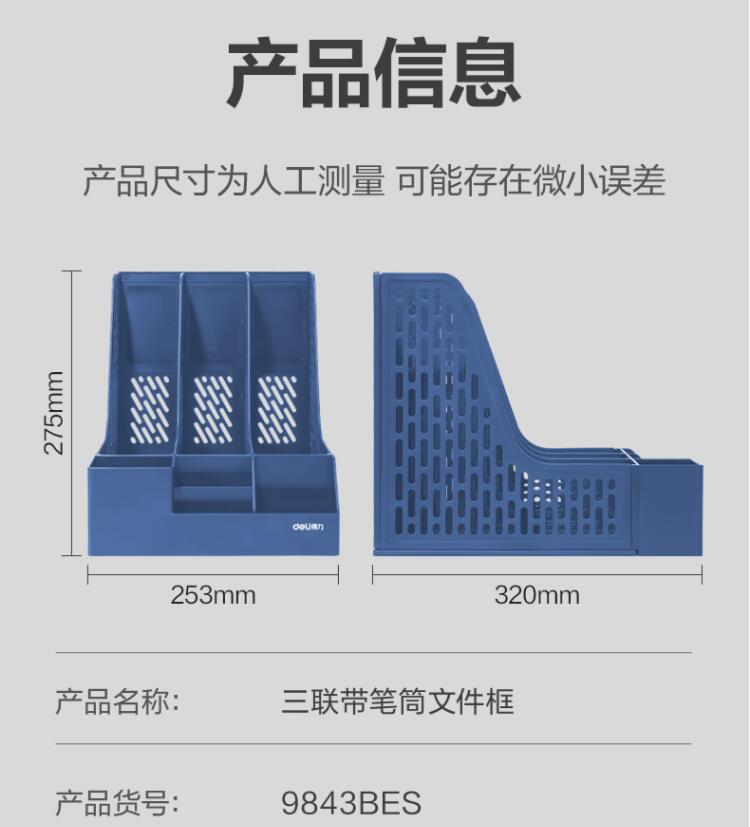 得力 9843BES 三聯(lián)文件框 藍(lán)色