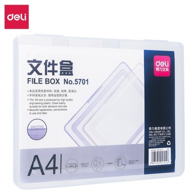 得力 5701 塑料文件盒 A4 透明藍(lán)