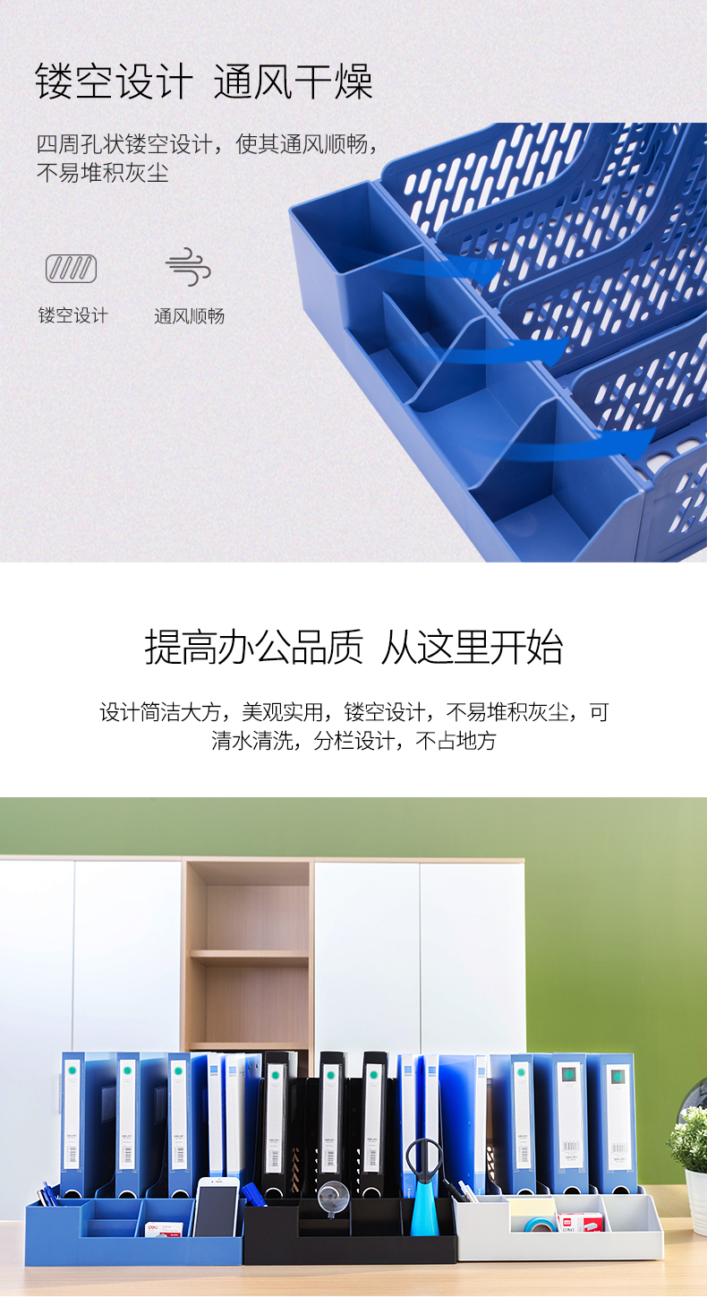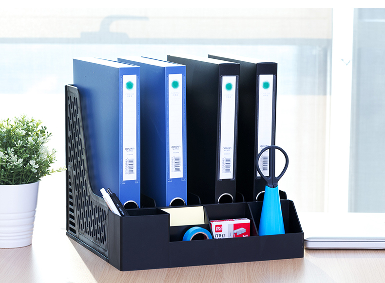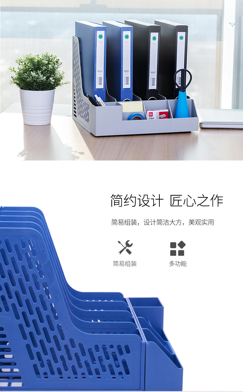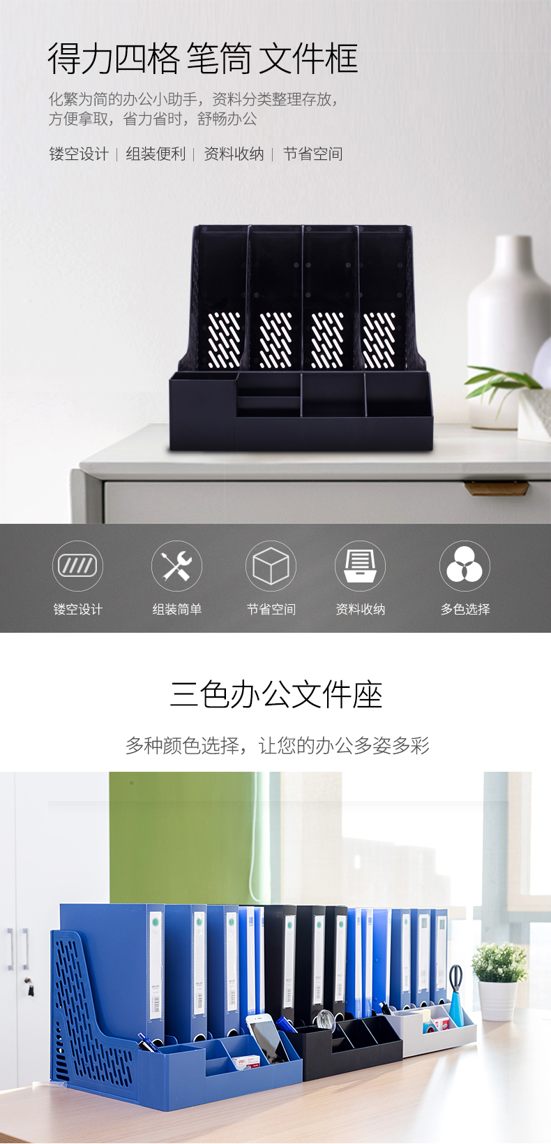 得力 78981 四聯(lián)文件框帶筆筒 灰色