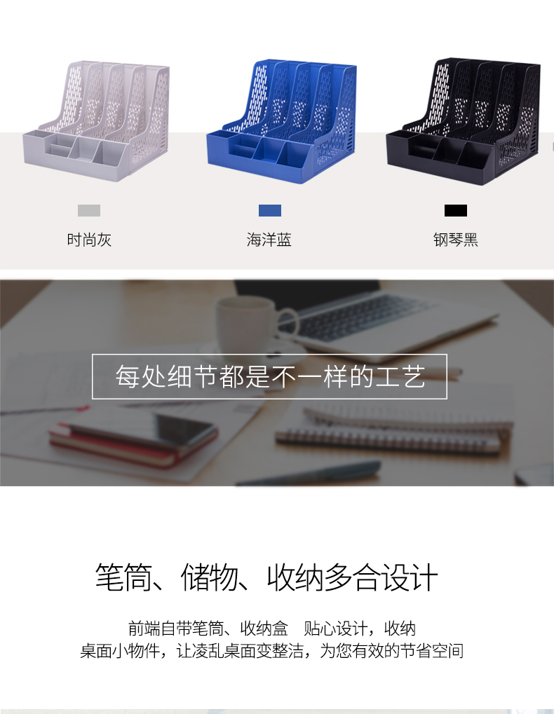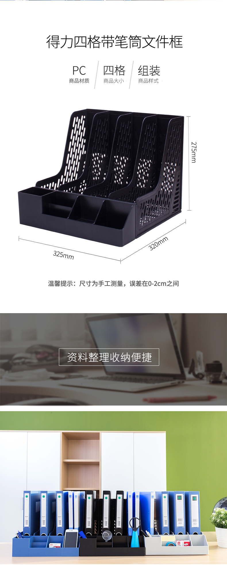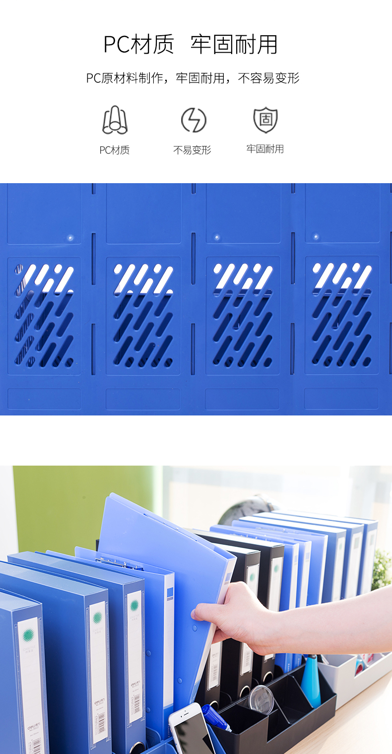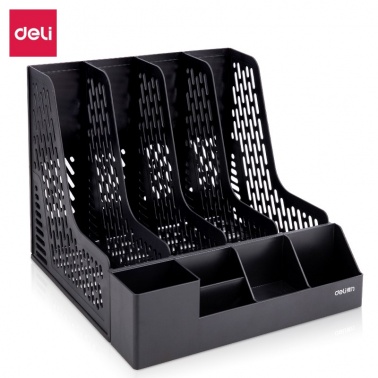 得力 78981 四聯(lián)文件框帶筆筒 黑色