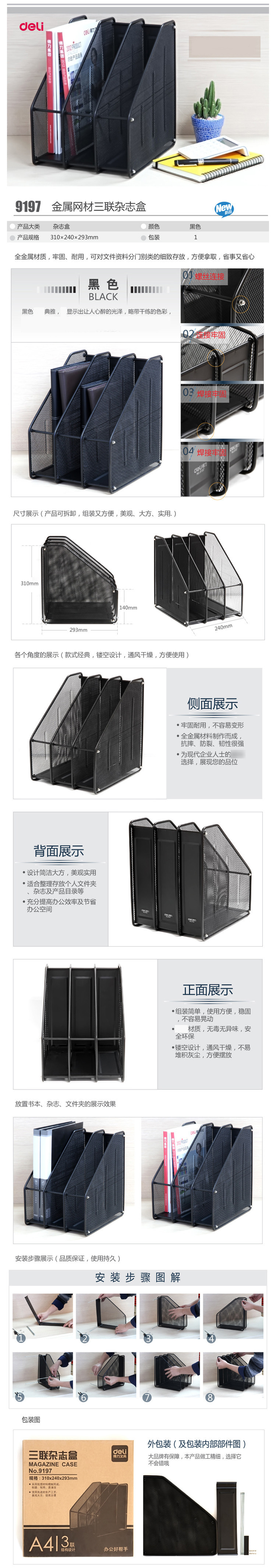 得力 9197 金屬三聯(lián)雜志架 黑色
