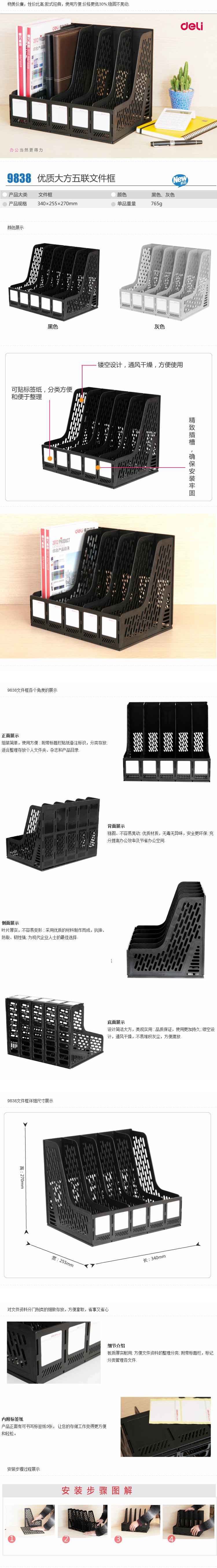 得力 9838 五聯(lián)文件框 黑色