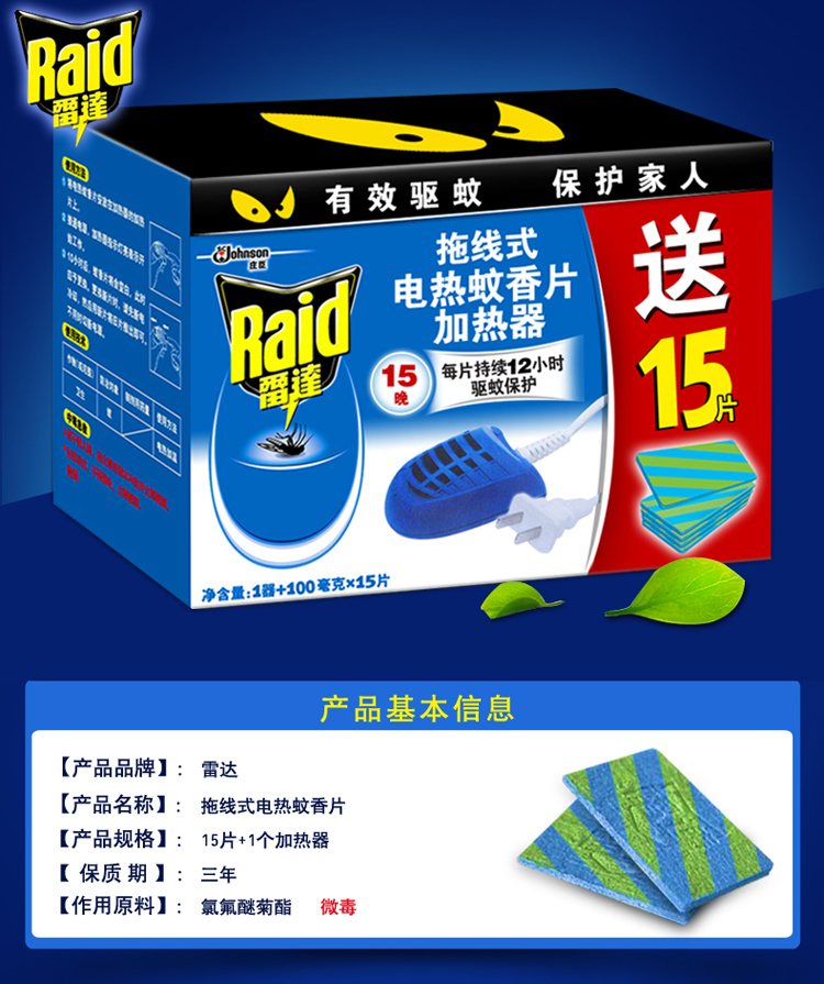 雷達(dá) 拖線式蚊香片 加熱器(送15片蚊香片)