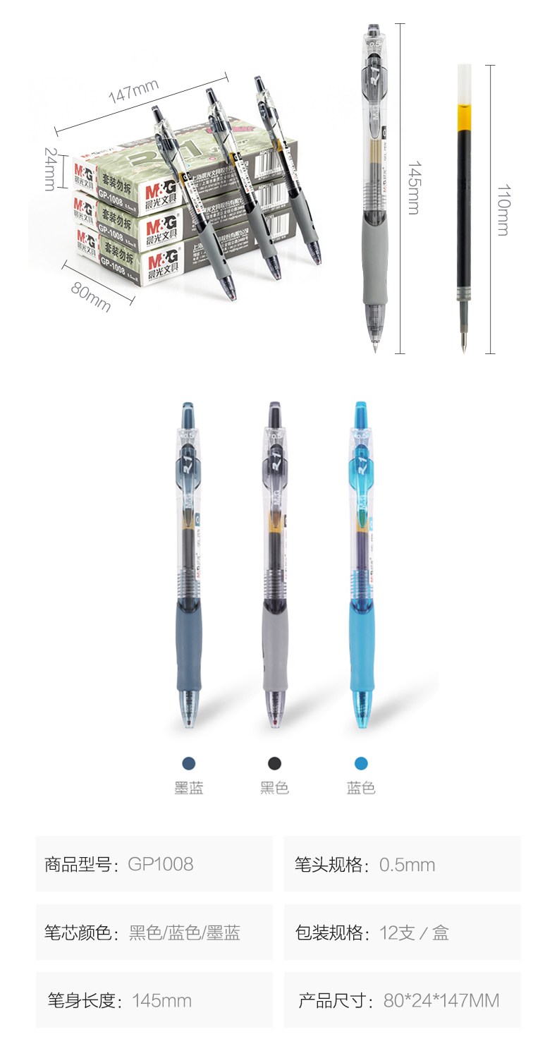 晨光 GP-1008 按動式中性筆 0.5mm 黑色 12支/盒 按盒銷售