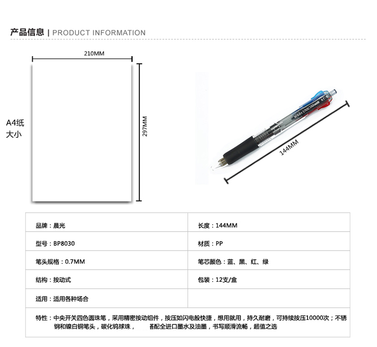 晨光 BP8030 四色圓珠筆 0.7mm 12支/盒