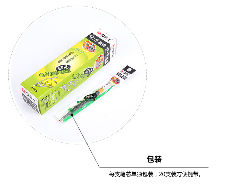 晨光 G-5 按動(dòng)中性筆筆芯 0.5mm 紅色 20支/盒