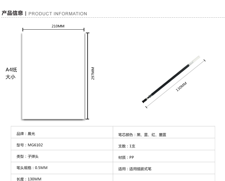 晨光 MG-6102 中性筆芯 0.5mm 黑色 20支/盒