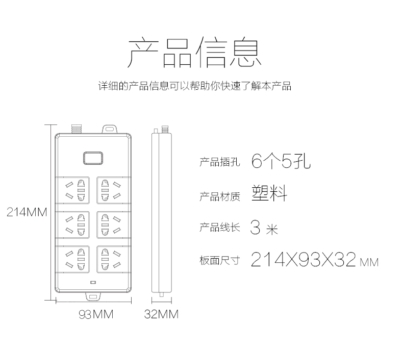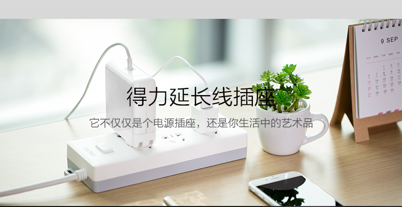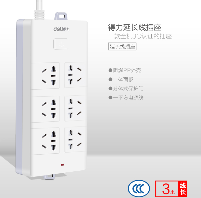 得力 18260 單控六聯(lián)接線板插座 3米 白色