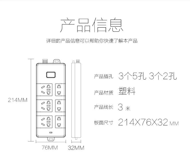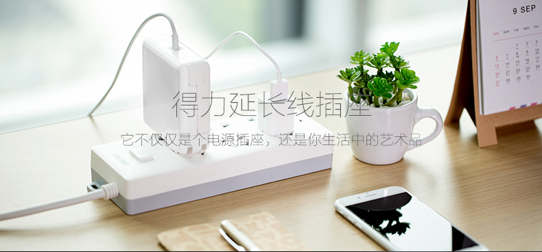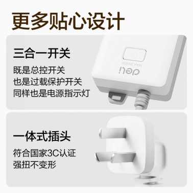 得力 18256 單控六聯(lián)接線板插座 3米 白色