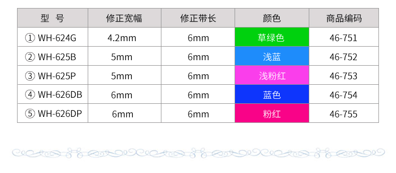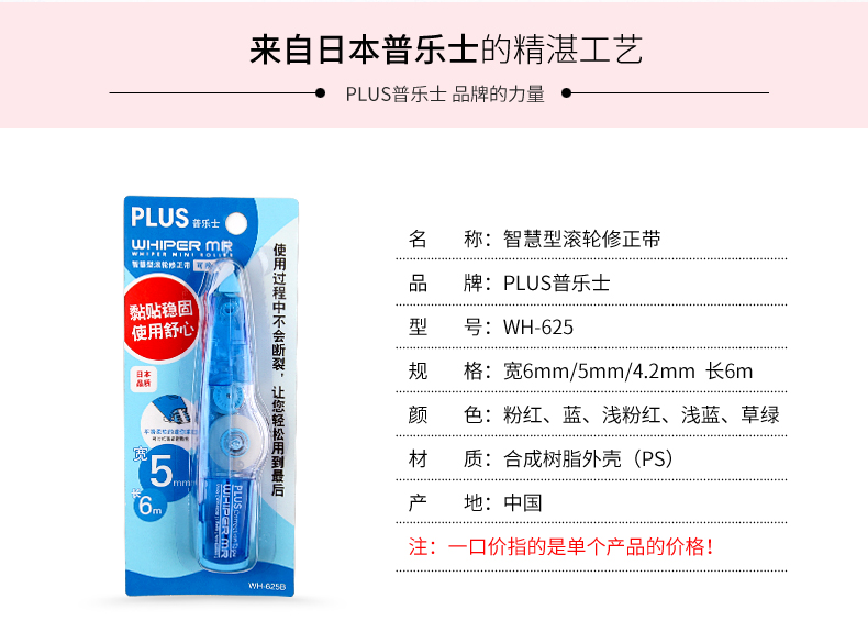 普樂士 WH-626DB 滾輪修正帶 6mm*6m 藍色