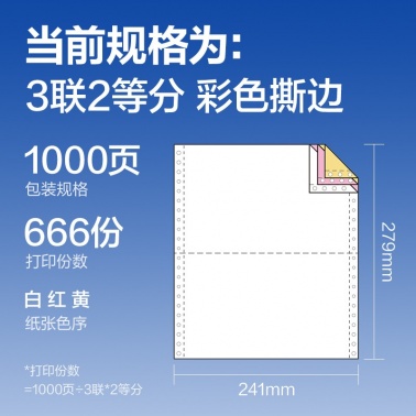 得力萊茵河 L241-3 電腦打印紙(1/2C彩色撕邊) 1000頁/箱