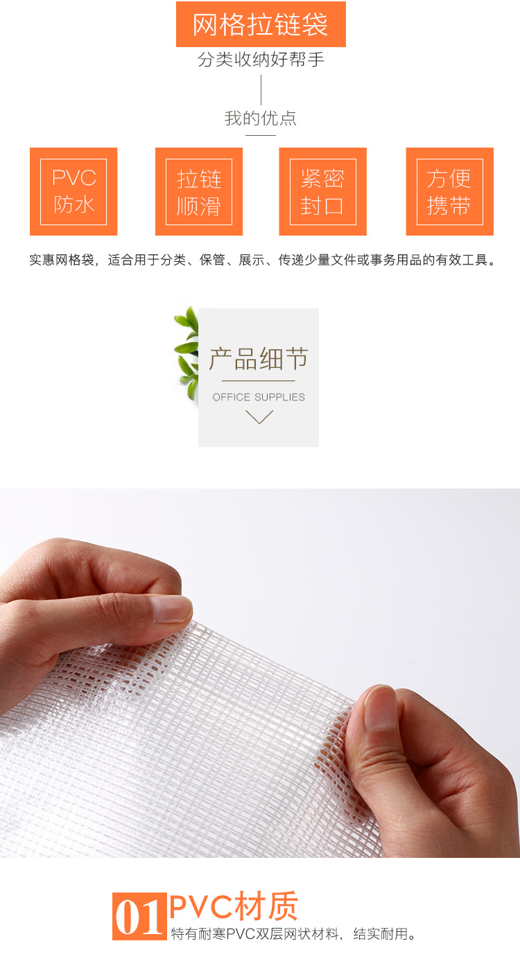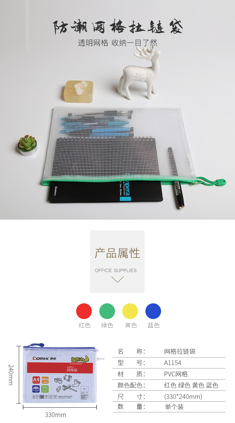 齊心 A1154 PVC防潮網(wǎng)格拉鏈袋 A4 混色