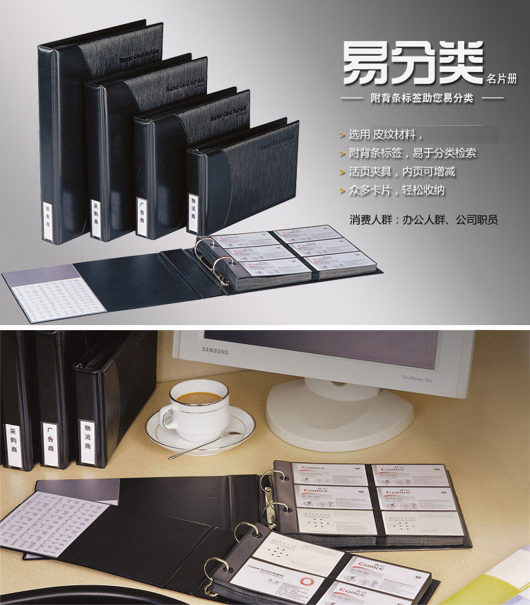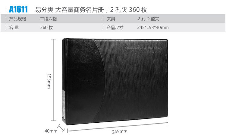 齊心 A1611 二段六格活頁名片冊(cè) 360名 黑色