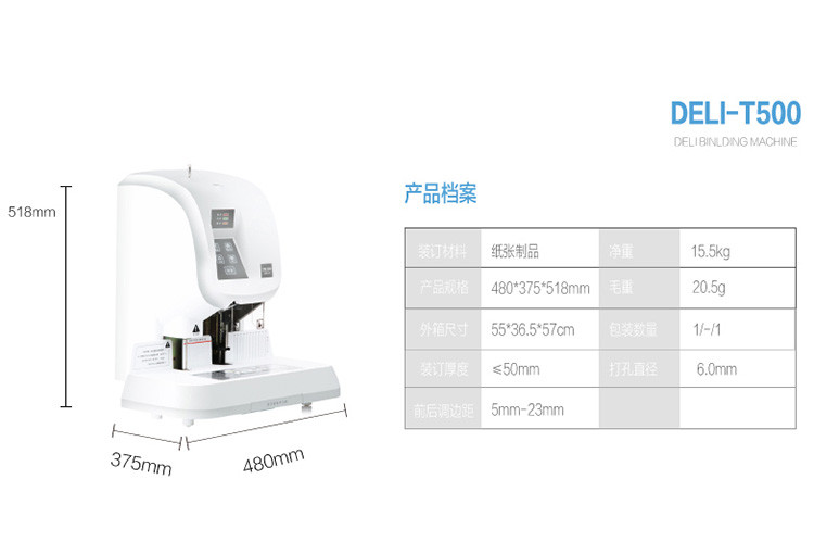 得力 T500 半自動(dòng)財(cái)務(wù)憑證裝訂機(jī) 灰色