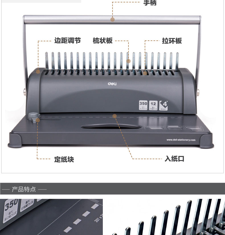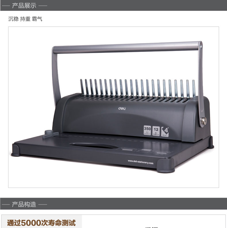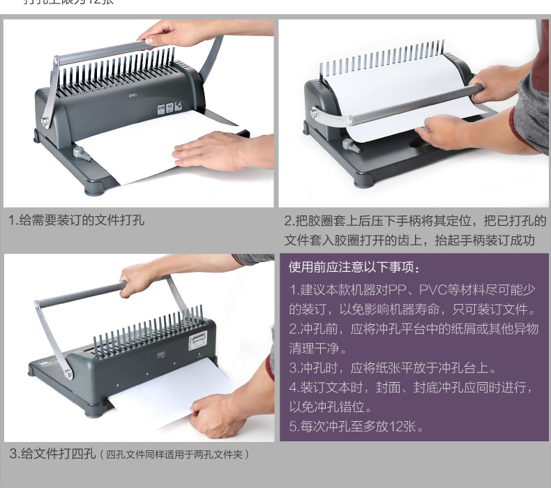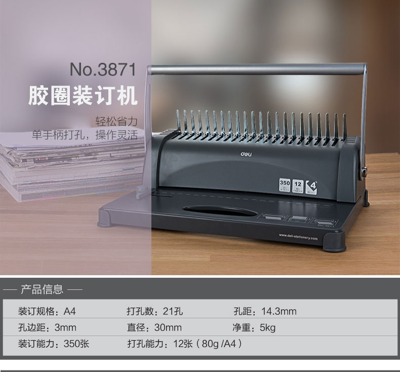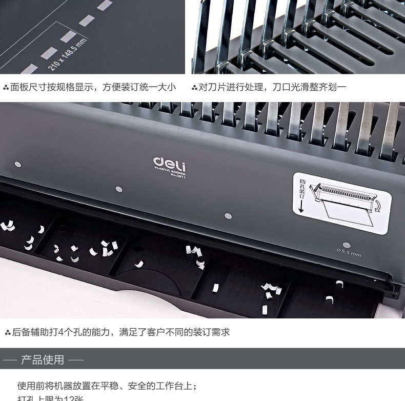 得力 3871 膠圈裝訂機(jī)21孔 黑色 A4