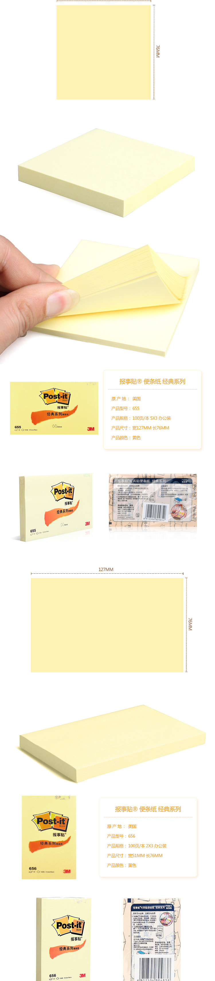 3M 654 報事貼便條紙 76mm*76mm 黃色 100頁