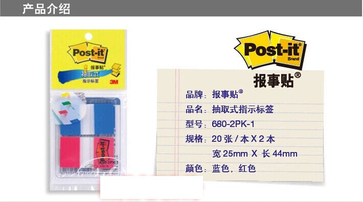 3M 680-2PK-1 透明指示標(biāo)簽(紅+藍(lán))20片*2色 25*44mm