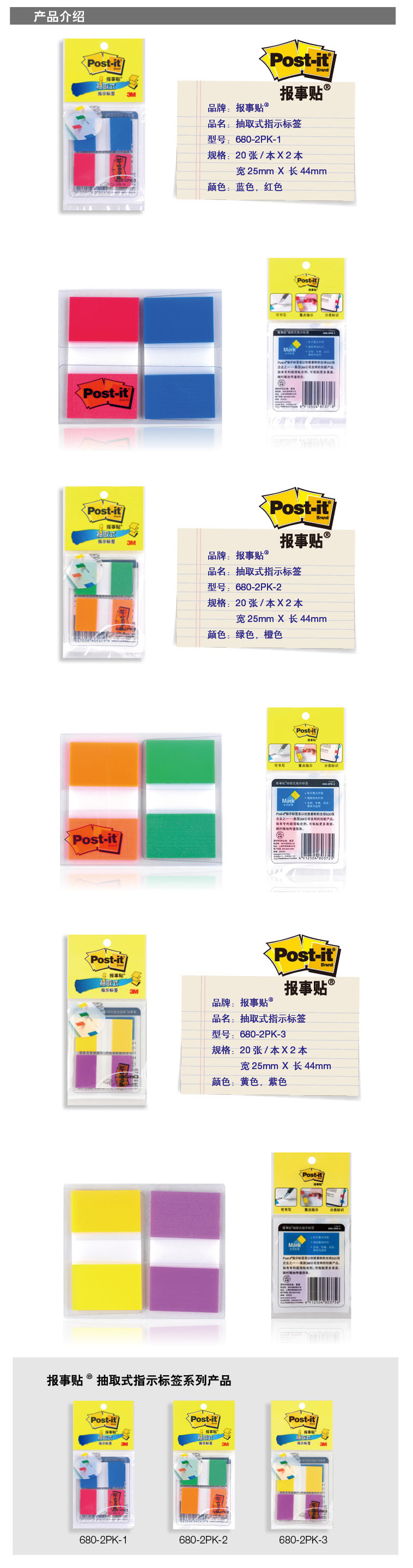 3M 680-2PK-2 透明指示標(biāo)簽(綠+橙)20片*2色 25*44mm