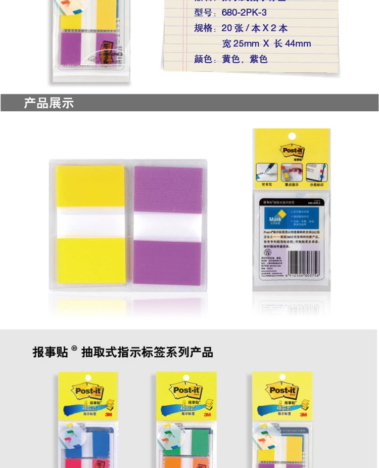 3M 680-2PK-3 透明指示標簽(黃+紫)20片*2色 25*44mm