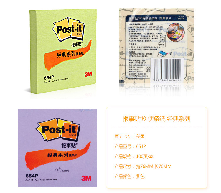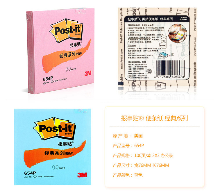 3M 654P 報事貼便條紙經典系列 76*76mm 粉色 100頁