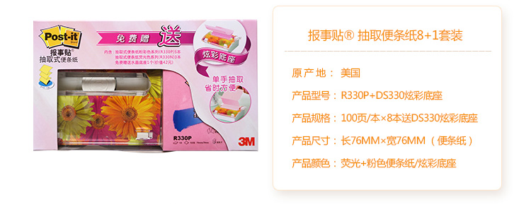 3M DS330-8P 8+1抽取系列報(bào)事貼套裝 76*76mm 炫彩底座