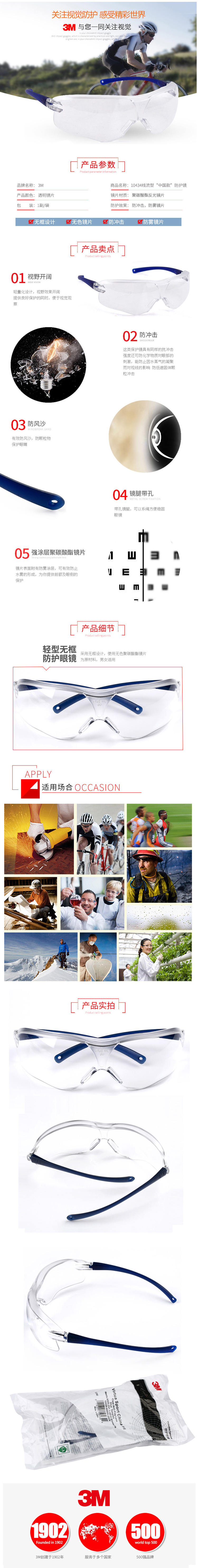 3M 10434 中國(guó)款輕便防霧防護(hù)眼鏡(透明鏡片) 20付