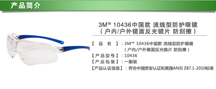 10436防護(hù)眼鏡防止工業(yè)場沖擊及飛濺物對眼睛的傷害;鏡面涂層鏡片適合頻繁進(jìn)出室內(nèi)室外工作崗位,既能阻隔室外強(qiáng)光照射,又能保持室內(nèi)清晰可見度