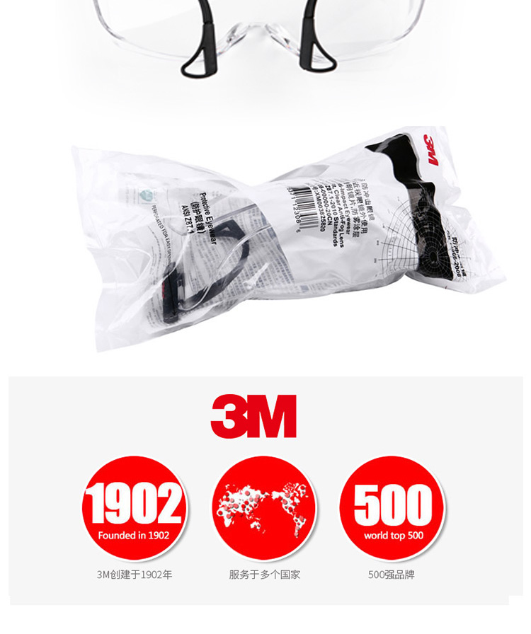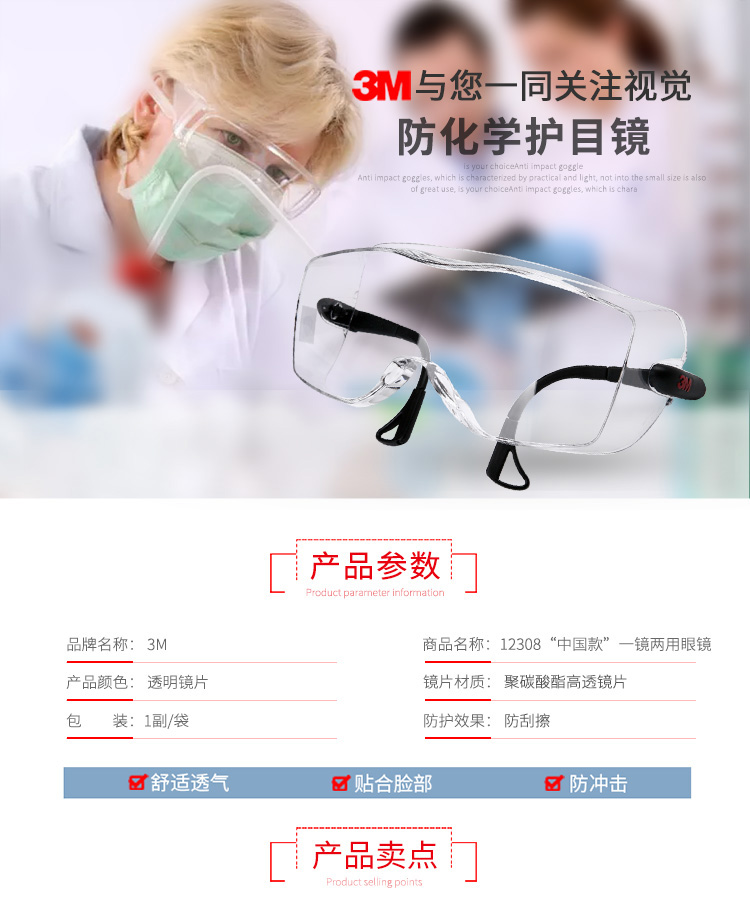 3M 12308 中國款有框防霧防護(hù)鏡 20付/盒