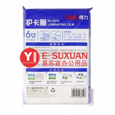 得力 3810 塑封膜 6寸 70mic 透明白色 100張/包