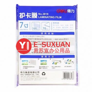 得力 3818 塑封膜 7寸 70mic 透明白色 100張/包