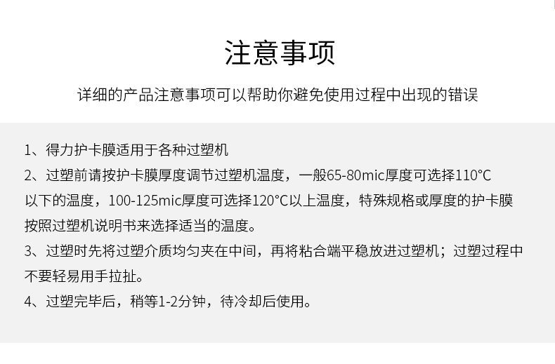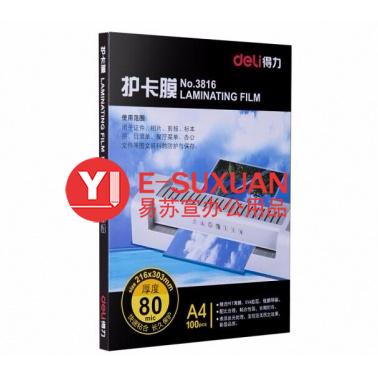 得力 3816 塑封膜 A4 80mic 透明白色 100張/包