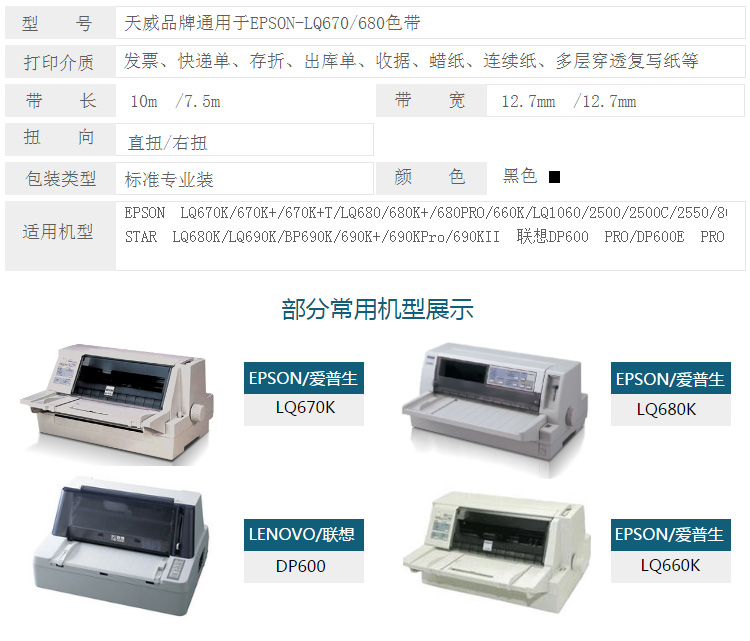 天威 LQ670K/670K+/680K/2500/2550 色帶框 10m*12.7mm 黑色