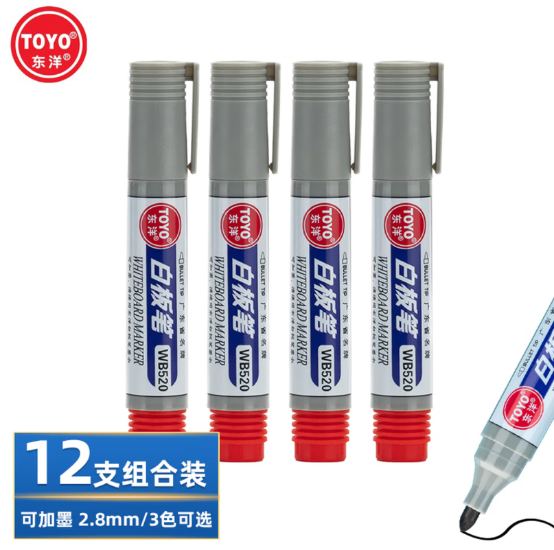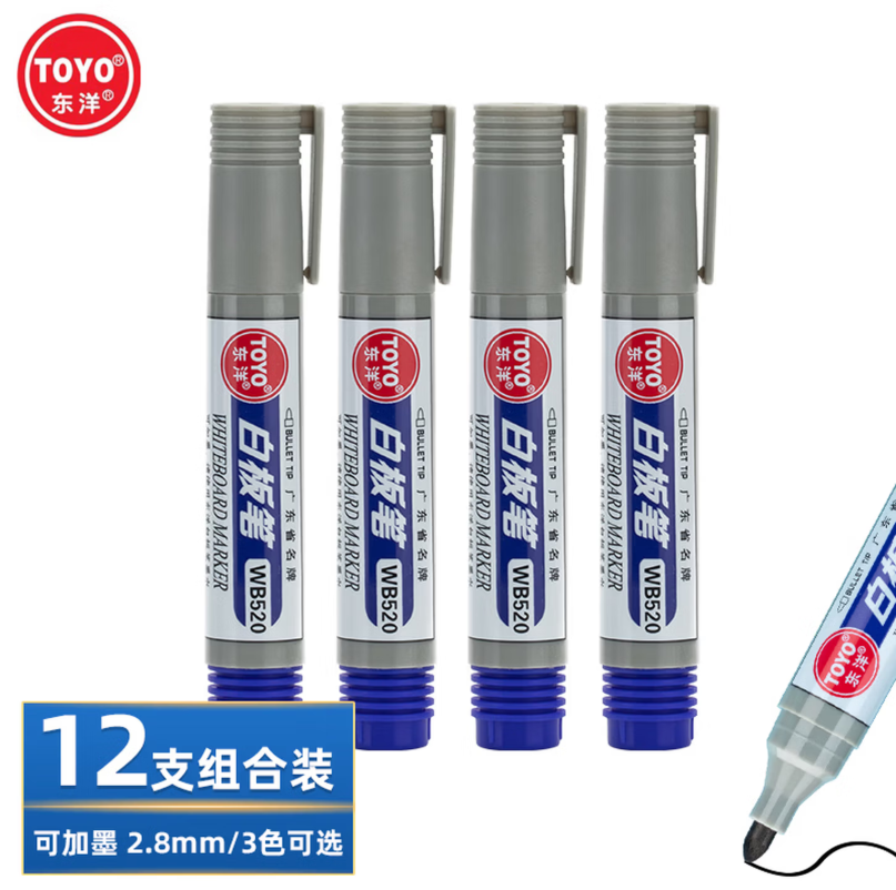 東洋 WB-520 可加墨白板筆 2.2-2.8mm 黑色