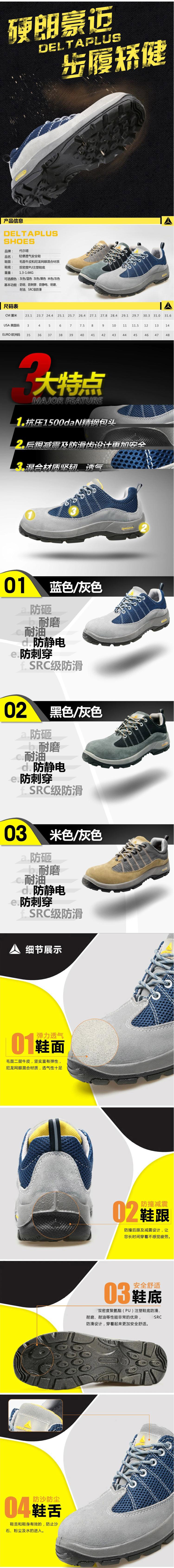 代爾塔 301322 防砸/防穿刺/防靜電/耐磨/耐油輕便安全鞋 45碼 灰藍色