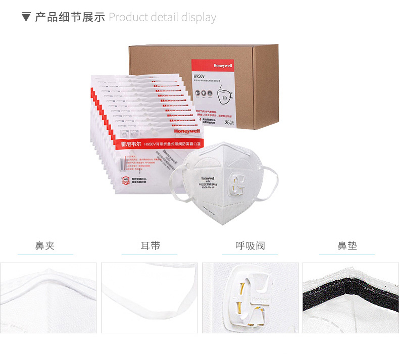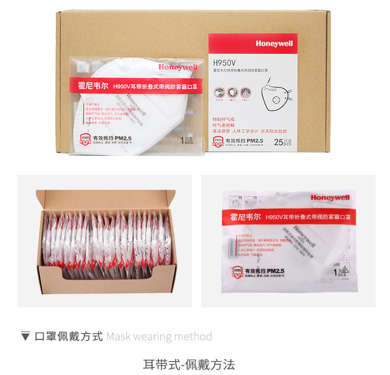 霍尼韋爾 H950V KN95 耳戴折疊式帶閥防顆粒物口罩 H1009501V 25只/盒