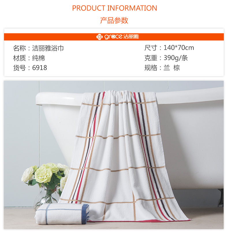 潔麗雅 6918 純棉強吸水舒適浴巾 140*70CM 顏色隨機