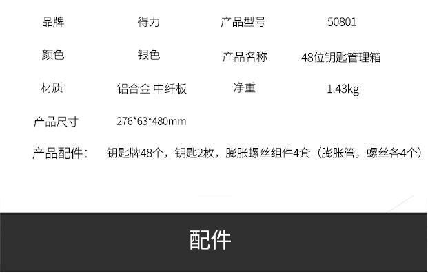 得力 50801 鋁合金鑰匙管理箱 48位 銀色