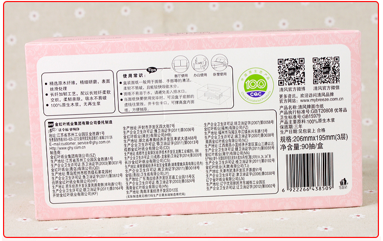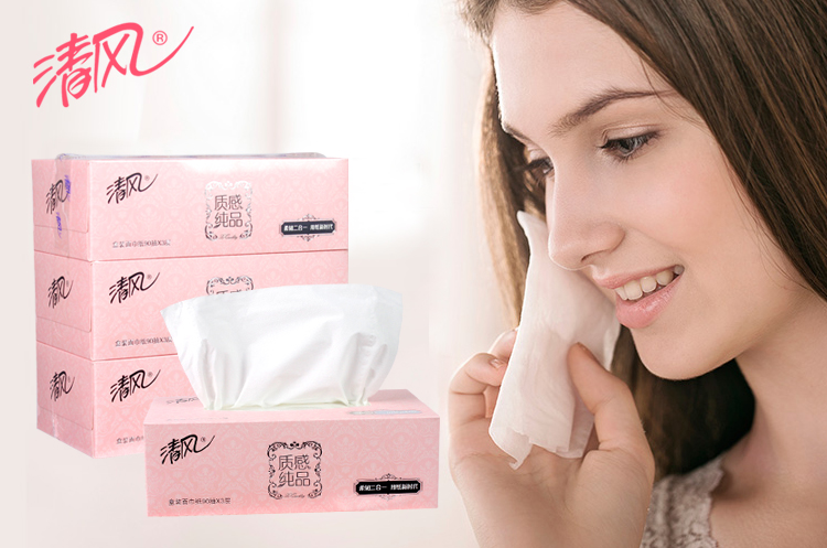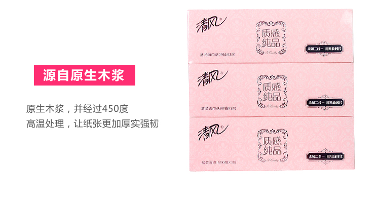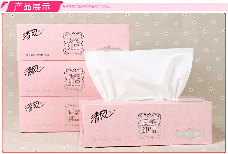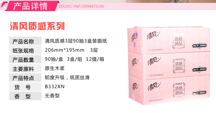 清風(fēng) B338X1/B332XN 90抽三層盒裝面巾紙 3盒/提 12提/箱