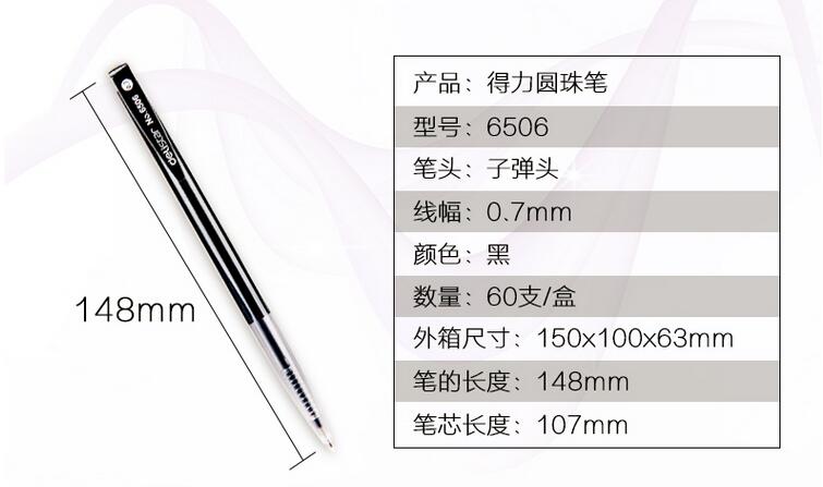 得力 6506 按壓式圓珠筆 0.7mm 紅色