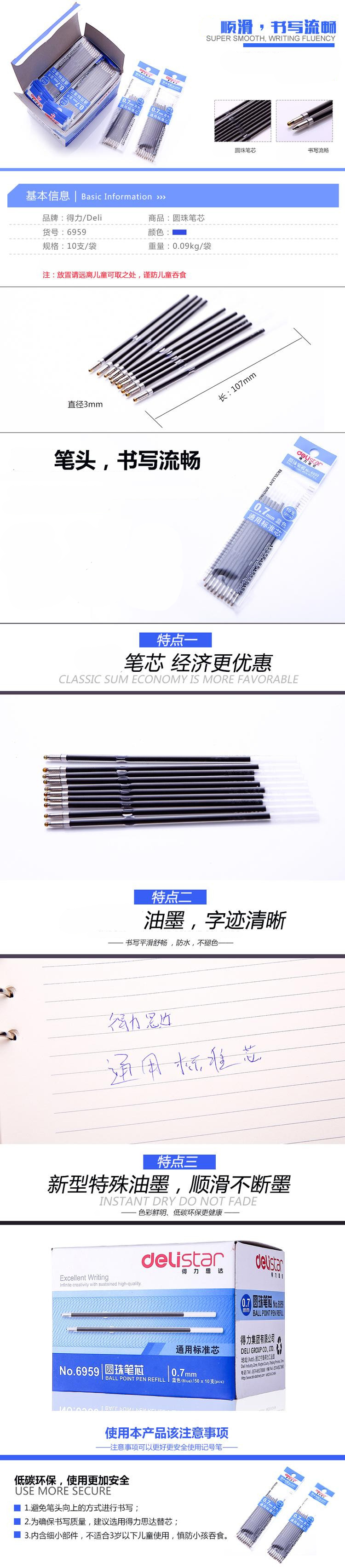 得力 6959 圓珠筆芯 0.7mm 藍色 10支/包